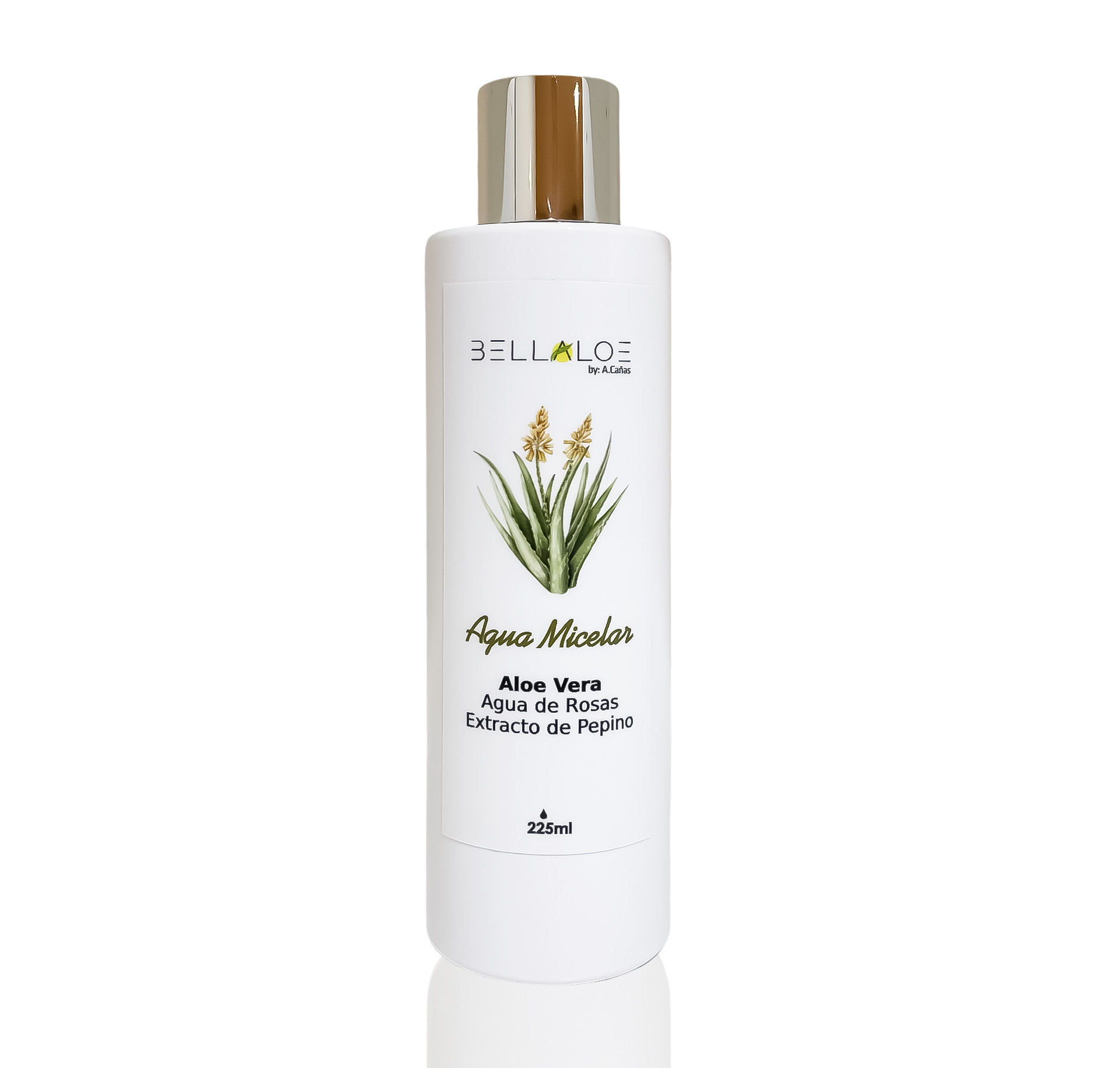 Agua Micelar natural formulada a base de Aloe Vera ecológico de cultivo andaluz, aguas florales, extracto de pepino y fantásticas propiedades limpiadoras naturales. Aporta nutrientes, calma y previene el envejecimiento de la piel. Elimina la suciedad de forma altamente eficaz. Limpia y desmaquilla el rostro en profundidad, dejando la piel fresca y suave mientras respeta la barrera dérmica.