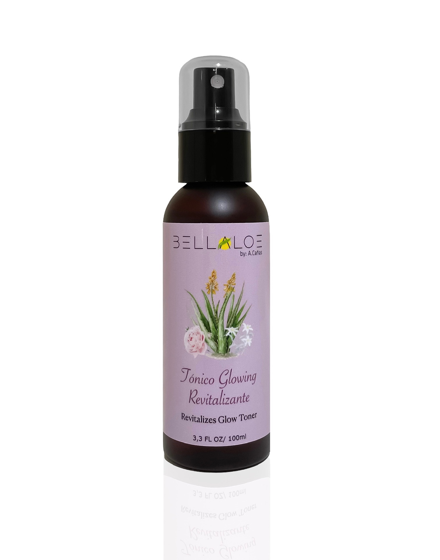 Tónico Facial Glowing Revitalizante. Concentrado al 99,9% con ingredientes 100% naturales. Formulado a base de jugo fresco de Aloe Vera ecológico de cultivo andaluz, y de extractos vegetales como el de Flor de Leontopodium Alpinum (Flor de las Nieves/ Edelweiss), Avena Sativa, Flor de Hamamelis Virginian, de Caléndula, de Rosa Damascena, y elementos estructurales para mantener la hidratación y firmeza de la piel, como Ácido Hialurónico, Allantoína y Glycosaminoglycans.
