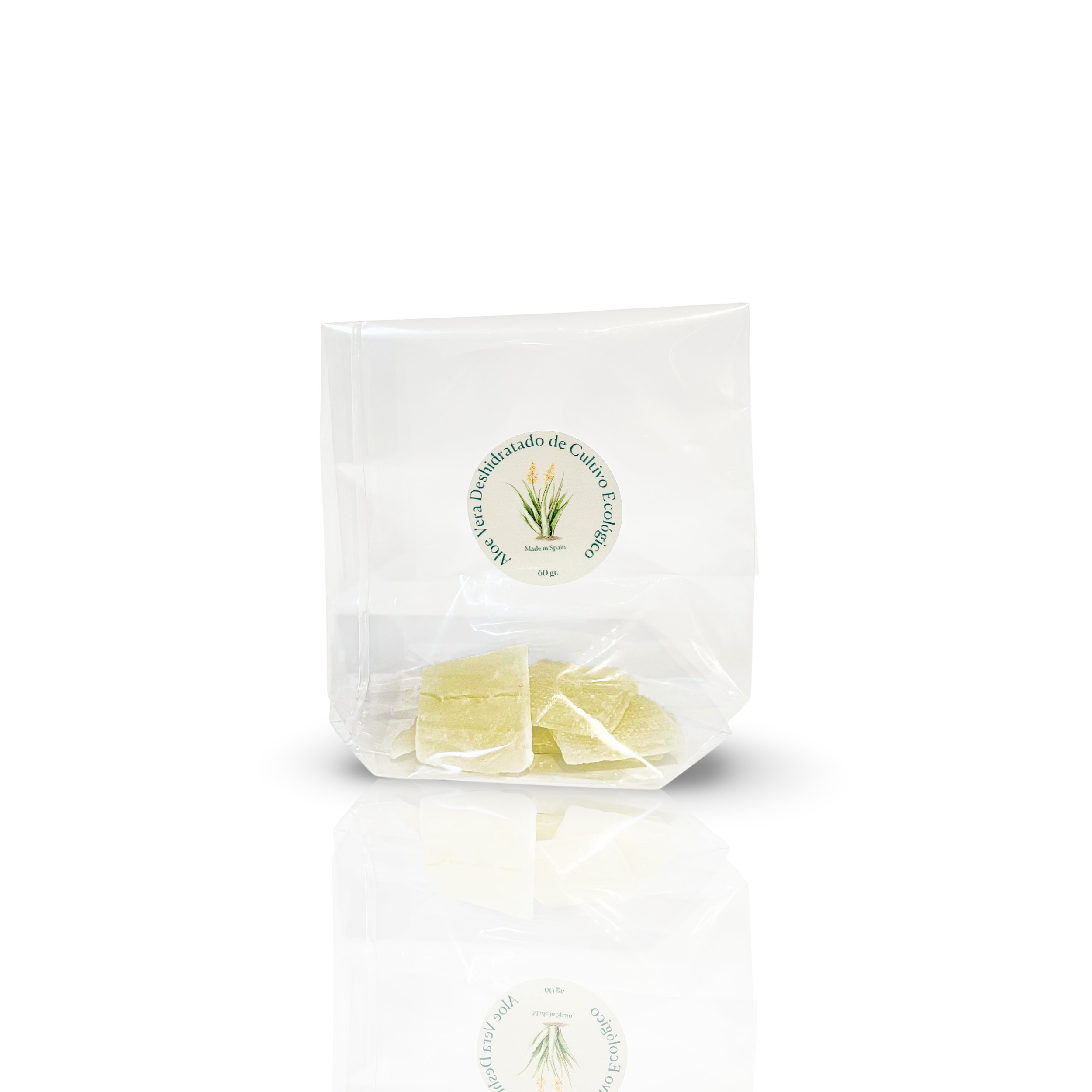 Gracias al proceso de deshidratación, los nutrientes presentes en el aloe fresco se concentran. Contiene una multitud de beneficios para la salud: Aporta gran cantidad de vitaminas, minerales, aminoácidos y polisacáridos naturales. Además de tener un agradable sabor, mejorará tu salud digestiva en general. (Para más información, ver en categoría “Snack Saludable”)